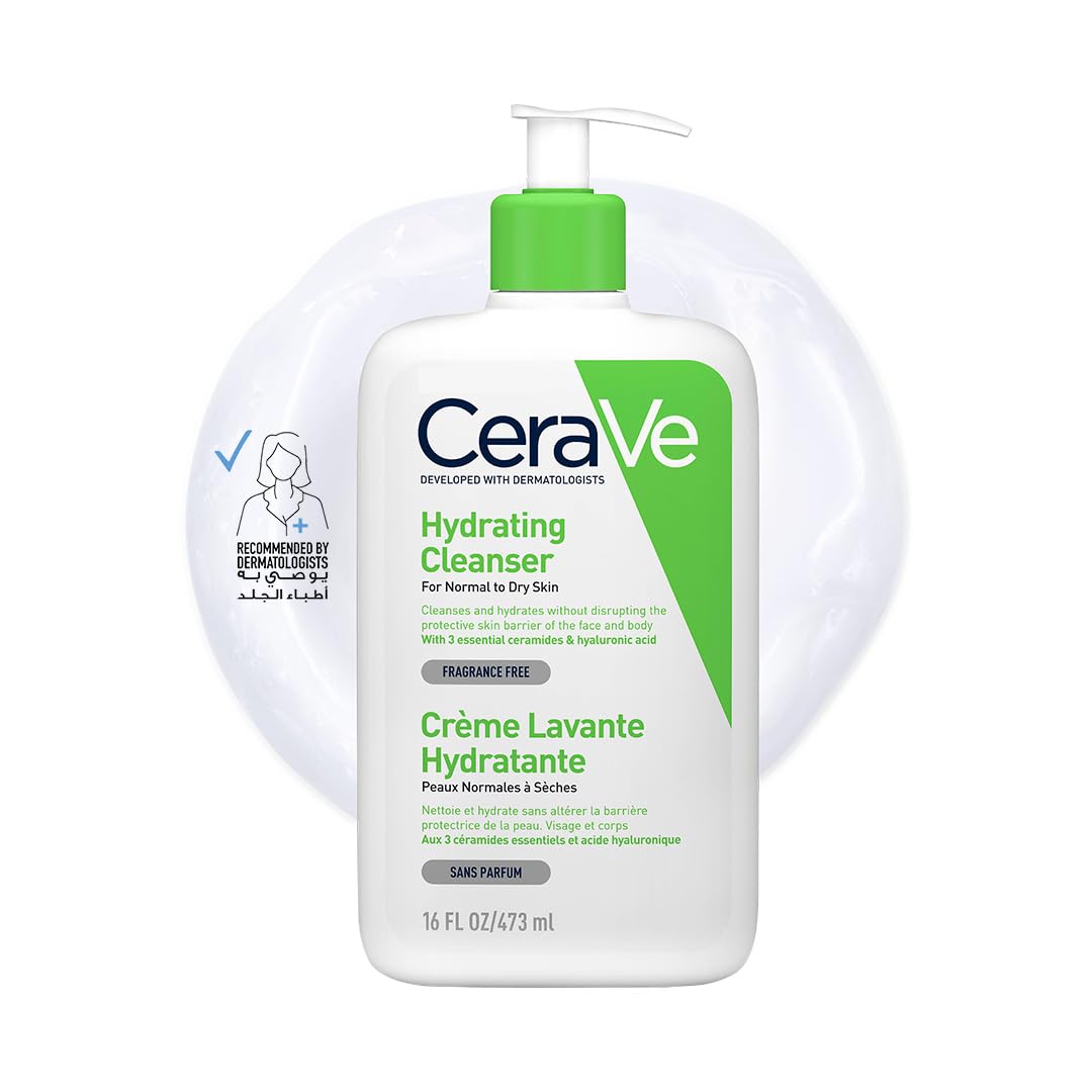 CeraVe Hydrating Facial Cleanser. Gentle wash with ceramides & hyaluronic acid. Restores skin barrier, locks moisture. Cleanses without stripping. Non-comedogenic, non-irritating, MVE tech for nourishment.